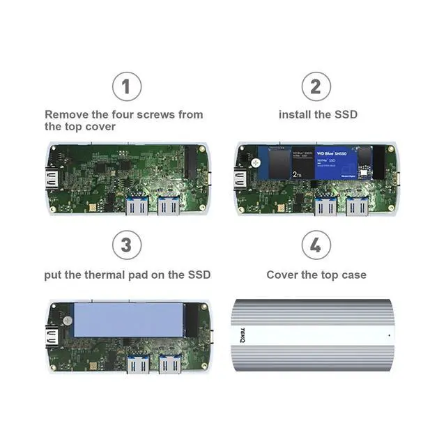 SSD Slot: Empower your device with an impressive storage upgrade of up to 2TB, ensuring ample space for all your important files and data. Experience lightning-fast read and write speeds of up to 1000MB/s. ^^ 4K@60Hz