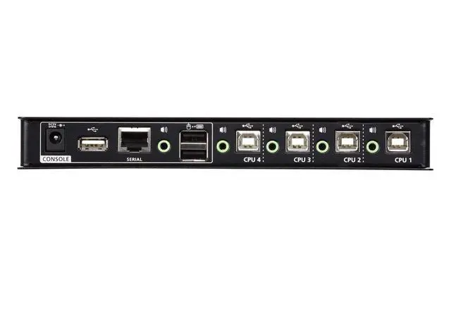 The CS724KM is a 4-Port USB KM Switch that enables users to control up to 4 computers with a single keyboard and mouse. Two switches can be daisy-chained to enable control of up to 8 computers from a single console. The CS724KM features various innovative port selection methods. Users can switch between the connected computers via front panel pushbutton, keyboard hotkey, mouse cursor, mouse wheel, and RS-232 commands. The mouse cursor method adopts ATENs exclusive Boundless Switching technology, which provides an intuitive way to switch control to another computer by simply moving your mouse cursor across a screen border and onto the target computer display.