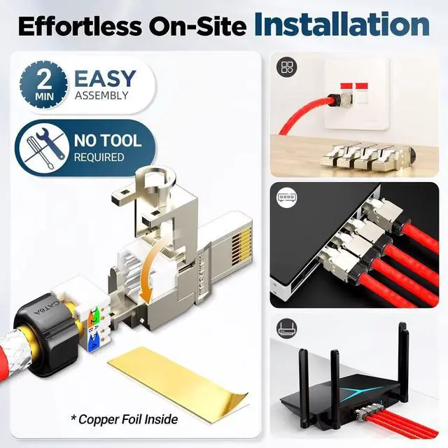 The AMPCOM STP RJ45 Connector is tool-free, ensuring quick and easy installation without the need for additional tools or complicated processes ^^