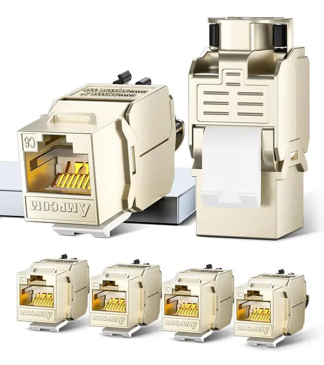 Fully shielded self-locking CAT 6 keystone jacket designed for easy snap-in assembly in keystone patch panels, surface mount boxes or wall plates (face plates), ratchet zip-tie end is easy to close and secure, no need to use traditional ties, tightening strength can be adjusted at any time. Not only saves time and labor, but also produces no excess waste ^^ 8P8C connector with shielding for a 1 GBASE-T channel compliant network and a max signal transfer of 250 MHz, Nickel-plated solid zinc casing and copper foil tape to suppress EMI and NEXT electromagnetic noise and crosstalk and 50 gold plated contacts with dust cover to prevent oxidization for reliable and stable connections ^^ Backwards compatible with 10MB/100MB/1000MB Ethernet CAT5E (CAT 5E) CAT6 (CAT 6) to future-proof your network.