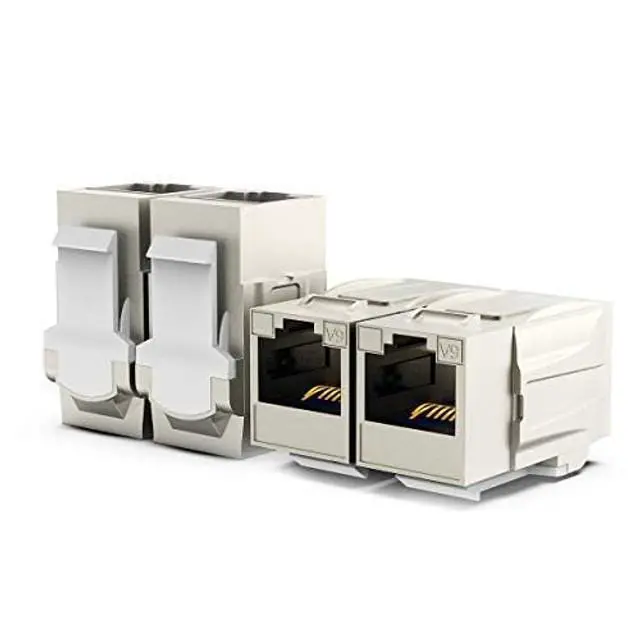 RJ45ETL VERIFIEDUSA PatentContacts durability: more than 1000 times; Each adapter could couple two RJ-45 Ethernet cables together to extend the connection between two network cables. This RJ45 CAT. 6A female to female Ethernet couplers are backward compatible with older networks (eg. Cat. 3, 4, 5, 5e cabling); CAT6A Keystone inline Coupler for voice, home networking, home office, audio, video and more; Gold nickel plated contacts ensure a corrosion free connection. CE and Reach Compliant, ETL VERIFIED, USA