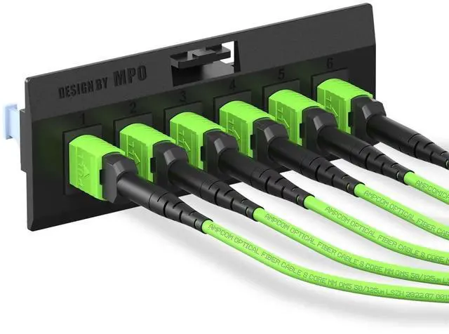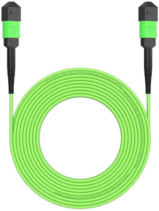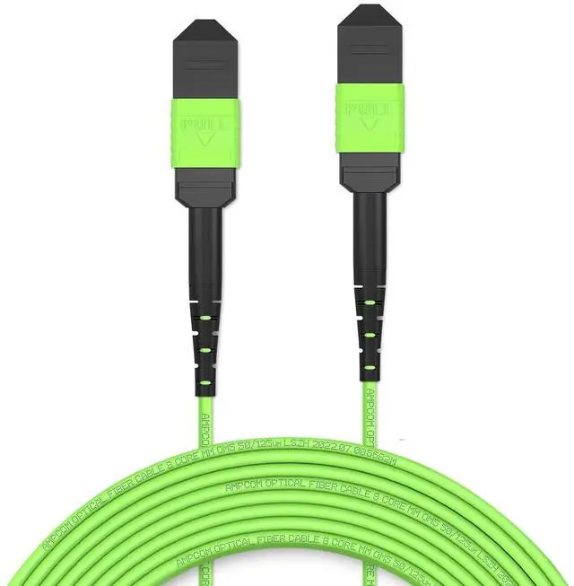 AMPCOM MPO to MPO Trunk Cable 50/125m Multimode OM5 (12 Fiber, MPO to MPO Female, Type B, LSZH/Riser, UPC, Lime Green) 10m (32ft)