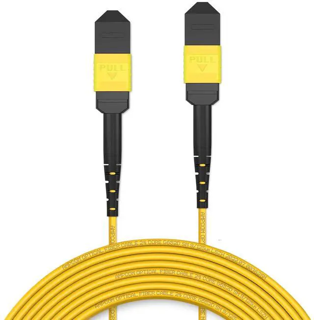 AMPCOM MPO to MPO Trunk Cable 9/125m Singlemode OS1/OS2(24 Fiber, MPO to MPO Female, Type B, LSZH/Riser, UPC, Yellow) 2m (6ft)
