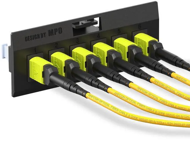 AMPCOM MPO to LC Breakout Cable 9/125m Singlemode OS1/OS2(8 Fiber, MPO to LC, Type B, LSZH/Riser, UPC, Yellow) 5m (16ft)