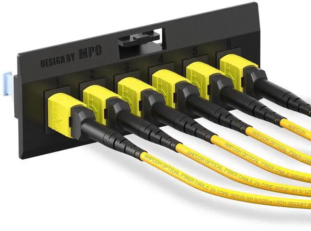 AMPCOM MPO to MPO Trunk Cable 9/125m Singlemode OS1/OS2(24 Fiber, MPO to MPO Female, Type B, LSZH/Riser, UPC, Yellow) 30m (924.4ft)