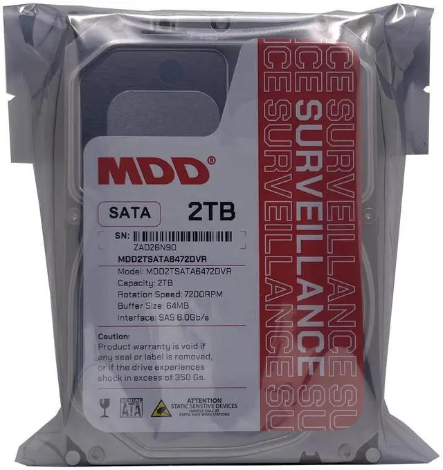 MaxDigitalData 2TB 64MB Cache 7200RPM SATA 6.0G b/s 3.5 inch Surveillance Hard Drive (MDD2TSATA6472DVR) are the high performance and reliable choice for always-on 24/7 applications. They are designed for Desktop PC, NAS, media center, media server, surveillance DVR, digital signage and other AV systems requiring perfect audio and video, low heat, and long term reliability. Ideal ForLots of storage in Desktop PCs, Workstation PC, All-in-One PC, NAS, CCTV DVR, Surveillance System devices. MDD 3.5" 2TB SATA 6.0G b/s Internal Desktop HDD is fully compatible with any CCTV, DVR, NAS, External Enclosure, PC/Mac Desktop Computer with SATA 6.0G b/s interface.