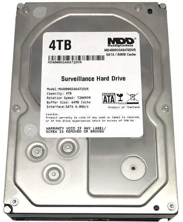 MaxDigitalData 4TB 64MB Cache 7200PM SATA 6.0G b/s 3.5" Internal Surveillance CCTV DVR Hard Drive (MD4000GSA6472DVR) is a product made by major hard drive factory that manufactured for other companies (OEM Hard Drive Reseller/VAR) re-brand to make it appear as if they made it or for large volume special application or system integration. Designed for 24/7 Operation, Perfect for Surveillance System, Security System CCTV DVR Devices