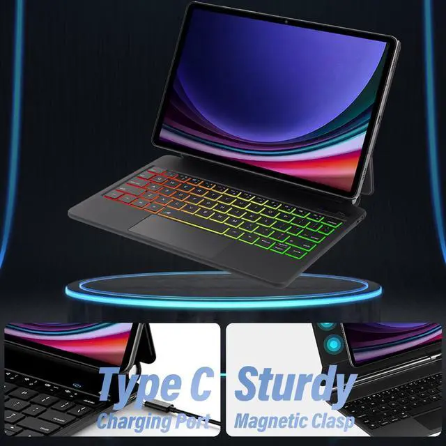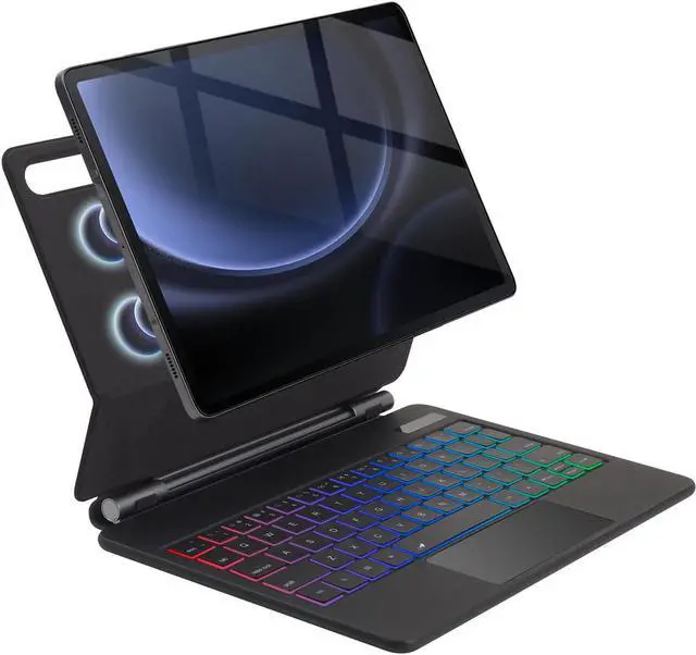 Wineecy Touchpad Magic Keyboard Case for Samsung Galaxy Tab S9 FE 5G 10.9 '', S9/S8/S7 11 Inch, Rainbow Backlit Magic Floating Cantilever Stand Magnetic Keyboard Cover with Multi-Touch Trackpad