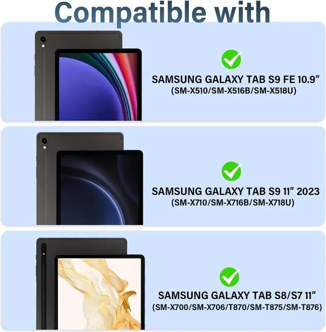 [(Compatibility Model)] Exclusively designed for SAMSUNG GALAXY TAB S9 11''(SM-X710/SM-X716B/SM-X718U)-TAB S9 FE 10.9''(SM-X510/SM-X516B/SM-X518U)-TAB S8 11''(SM-X700/SM-X706)-TAB S7 11''(SM-T870/SM-T875/SM-T876). Please confirm the model number before purchase. Does not include the Samsung Tablet or S Pen