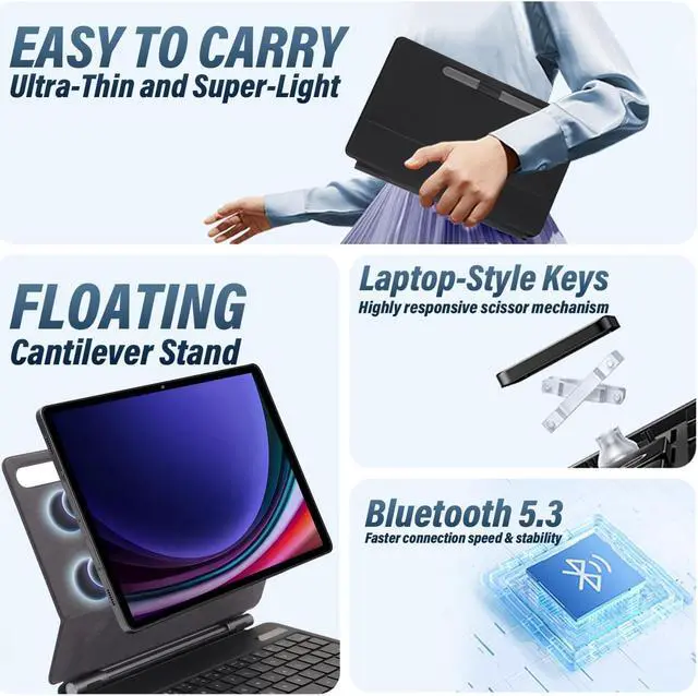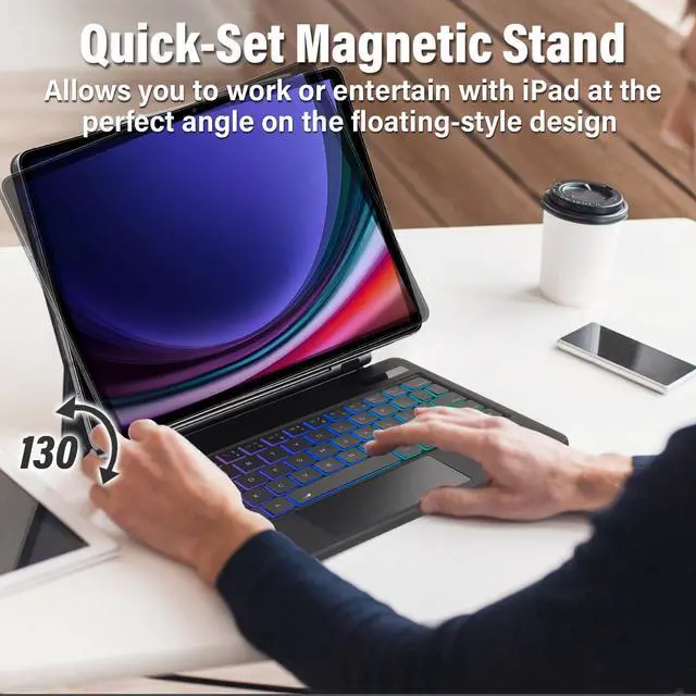 [(Sturdy Magnetic Design)] Featuring a slightly floating design, the magic keyboard case ensures a strong magnetic suction for the safety of your device.Adopting a floating cantilever design that is both innovative and intuitive, allowing effortless adjustment to your preferred viewing angle.