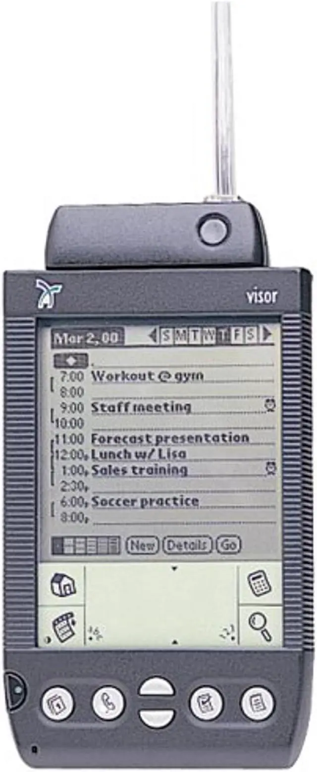 Connect to your PC using a standard phone line, synchronize data while you're traveling, or check e-mail and surf the Web--all from your Handspring Visor handheld with the Handspring modem module.