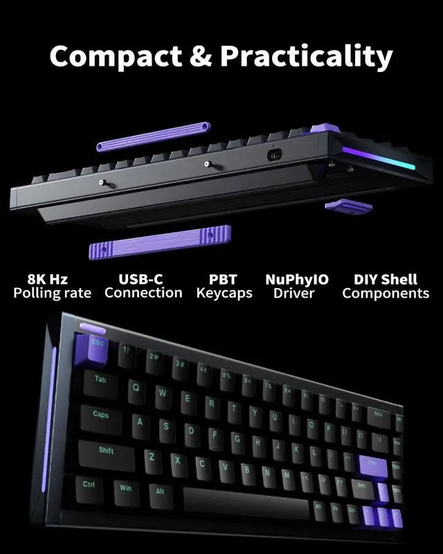NuPhyIO Self-Developed Driver: You can easily customize your BH65 game keyboard through NuPhyIO. From key remapping to macro creation, actuation point adjustments, and rapid triggering setup, access everything you need from any browseranytime, anywherefor a truly personalized setup ^^ All-Aluminum BodyThe all-aluminum body, from top to bottom, delivers a sleek and premium aesthetic that adds a touch of elegance to your desk, while offering unmatched durability and sturdiness for long-lasting performance.