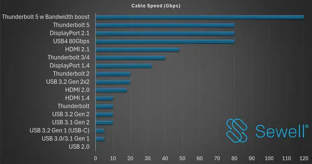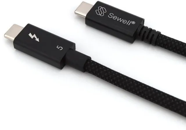 Experience the future of connectivity with Sewell Thunderbolt 5 Cables - engineered to deliver the full power and performance of the Thunderbolt 5 standard. Designed for professionals, creators, and power users, these cables deliver unprecedented speed of up to 120Gbps and stunning visuals with up to 10K resolution or triple 4K displays. It supports a USB-C power delivery of up to 240W for almost any USB-C or Thunderbolt powered device. Intel-certified and built with a durable, tangle-resistant, braided jacket, Sewell Thunderbolt 5 cables ensure seamless performance in demanding tech environments.