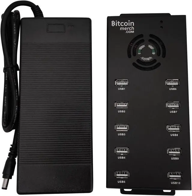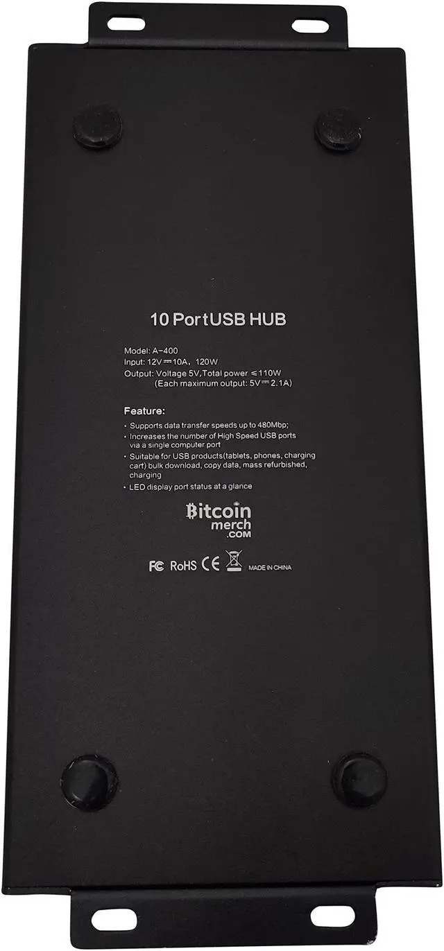Material body: Industrial aluminum You will receive 1. 10 Port USB Hub x 1 2. USB Cable x 1 3. 12V 10A Power supply x 1