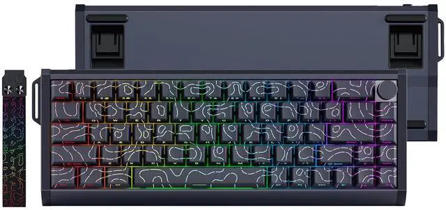 Backlit: RGB backlit adjustable, South-facing letters and contour line shine-throughKeyboard basement kit layer technology: Multi-layer shallow Gasket-Mounted with Sound Dampening FoamPackage- 68 Keys Keyboard with Knob- Type C-to-USB cable x 1, Keycap Puller x 1, User Manual x 1