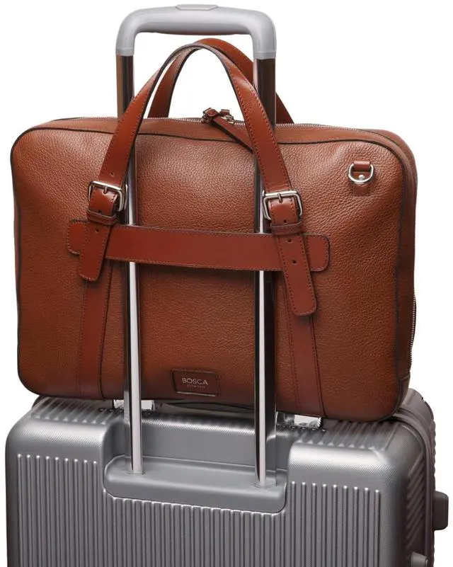 Bosca Italian Leather Laptop Work Briefcase Bag for Men - Full Grain Leather Tanned in Italy - Fits Up to 16" Laptops Slim Style Adjustable & Trolley Strap - 11.5" H x 16" W x 4" D Amber Brown