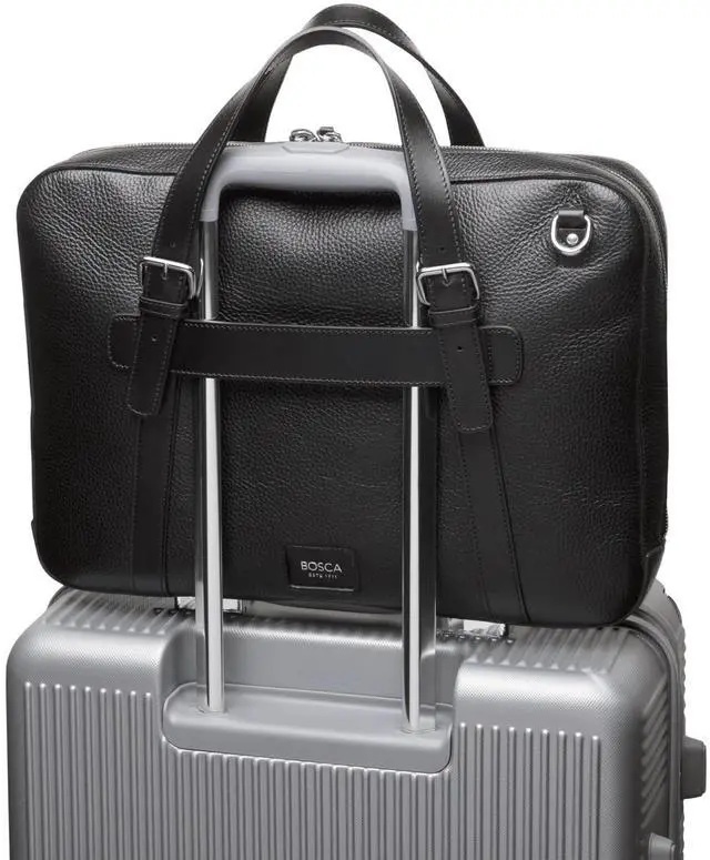 Bosca Italian Leather Laptop Work Briefcase Bag for Men - Full Grain Leather Tanned in Italy - Fits Up to 16" Laptops Slim Style Adjustable & Trolley Strap - 11.5" H x 16" W x 4" D Black