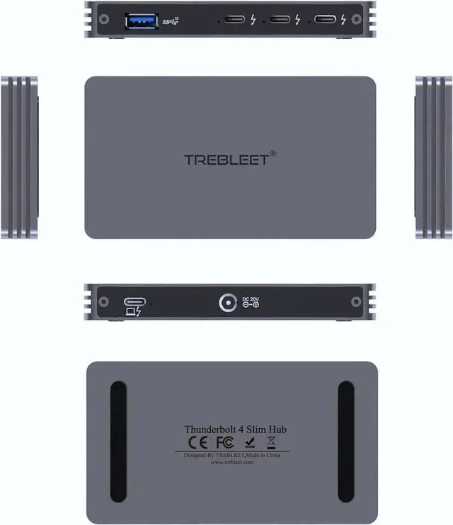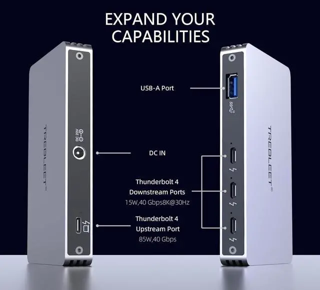 TREBLEET Slim Thunderbolt 4 Hub with 85W Charging, Single 8K or Dual 4K Display, Compatible with Thunderbolt 3/USB4 MAC OS & Windows OS, with Four 40Gbps Thunderbolt 4 Ports, One USB A 3.2 Gen2 Port
