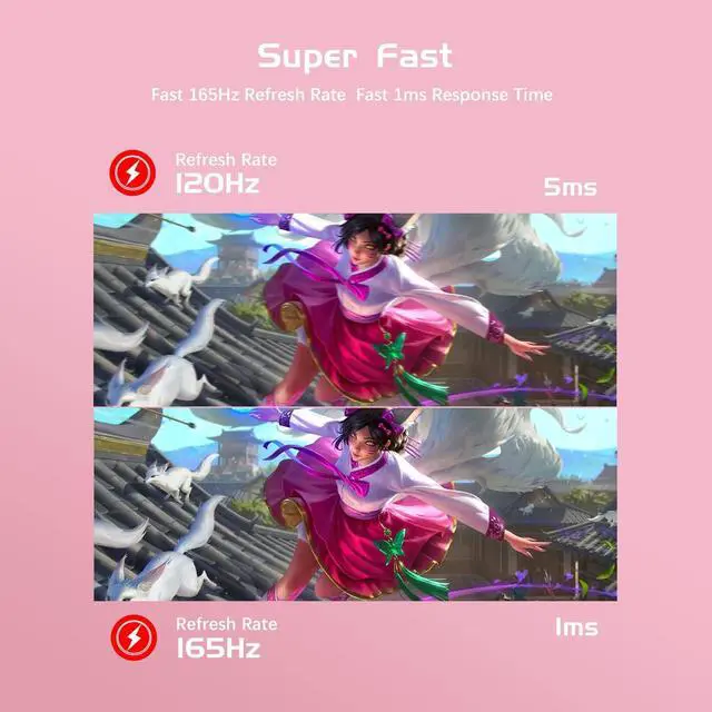 Adorable and Exquisite Appearance - The outstanding and cute pink color always catch the eye balls of the female group and makes them stop in their tracks, whether they are career women or teenage girls. Get this as a gift for your girlfriend or daughter or sister on unusual daysm stop in their tracks, whether they are career women or teenage girls. Get this as a gift for your girlfriend or daughter or sister on special days ^^ Remarkable Performance - With the advantage of 165Hz high refresh rate and 2 milliseconds fast response time, you can easily get a compelling performance no matter programming or editing or watching videos or playing games ^^ Super-comfortable Curved Monitor - The 1800R curve vertical alignment liquid crystal screen may not be so impressive, but this curvature allows for both an immersive gaming experience and the most comfortable distance to watch videos.