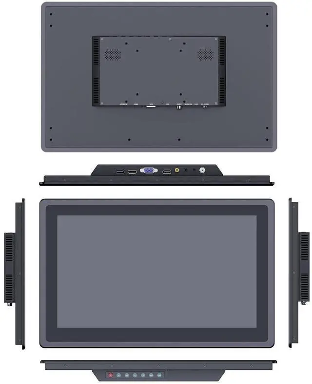 Furthermore, 160 horizontal and vertical viewing angles allow for easy visibility, even at extreme angles. Ports Aplenty Choose between HDMI, VGA, and RCA composite inputs; connect sound components via 3.5 mm audio-in and headphone-out ports. IP64 Dust and Water Resistance The front panel delivers IP64 dust and water resistance for easy deployment in demanding environments. Secure Connectivity A cable clamp allows the HDMI input cable to be fixed to the back of the monitor, preventing it from coming loose due to vibrations in industrial applications.