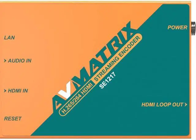 AVMATRIX SE1217 H. 265/H. 264 HDMI Streaming Encoder; 1x HDMI Iinput, 1x HDMI Loop Out, 1x Analog Audio Input; Supports H. 265/H. 264 Stream Encode Protocol, Up to 1080p60hz; Image and Text OverlayKey Features- 1x HDMI input, 1x HDMI loop out, 1x Analog audio input- Supports H. 265/H. 264 stream encode protocol, up to 1080p60hz- Dual-stream (main stream and sub stream) - RTSP, RTP, RTMPS, RTMP, HTTP, UDP, SRT, unicast and multicast- Video and audio streaming or single audio streaming- Image and text overlay- Mirror image & upside-down image- Live stream with no need for connecting a computerSpecifications-