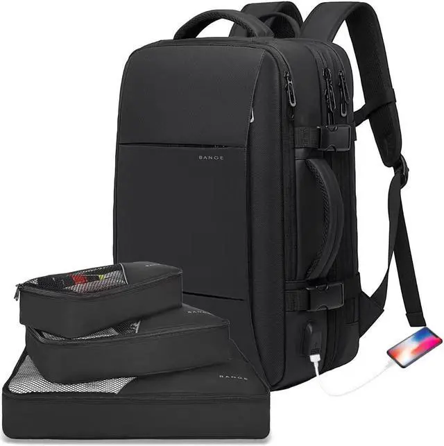 [(LARGE CAPACITY CARRY ON BACKPACK)] : BANGE mens backpack has many compartments and pockets. The main pocket can hold your travel goods,fit 5-8pcs clothes. The wet and dry separation pockets can hold your washing items and keep other items dry all the time. Front compartment can also hold magazines,Ipad and books and power bank which can charge your phone.