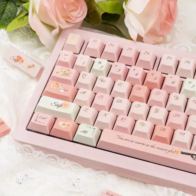 1. [ (Cute Flower Letterhead Theme) ] This cute keycap set adopts "Flowering Letter Raft" as the design inspiration, incorporating romantic floral patterns, with elegant personalized characters, adding a touch of warmth and creativity to the user's desktop. The pink color scheme is not only in line with the current trend, but also creates a sweet and soft atmosphere, which is very suitable for female users or gamers who like warm style.