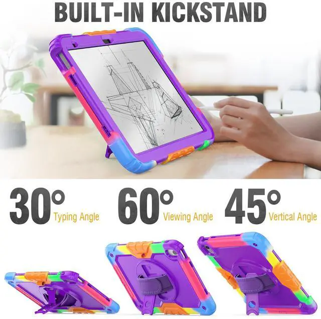 (Model Number: A2696 / A2757 / A2777 ). The Pencil is NOT included, and you can find step by step install instruction video in our store. Shockproof & Screen Protector -- This case for 10.9 inch is designed with durable anti shock material, soft silicone, hard plastic frame and built-in screen protector (2 front cover, one with built-in screen protector and one without). The sturdy case for 10 can keep your device safe from shock, drop, scratch or accidental damages in daily use. 360 Rotating Hand Strap & Stand -- This case for 10th Gen provides a stable supports, with viewing/drawing/typing angles. You can hold safely by one hand and find the most comfortable viewing angle you need, also the stand can be folded up when not in use.