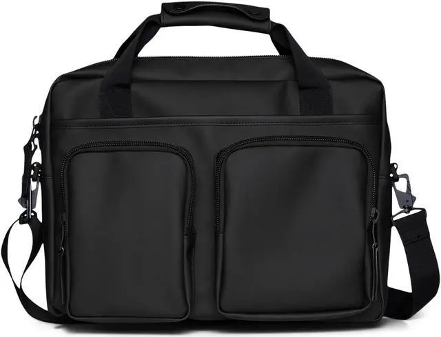 Texel Tech Bag is a functional waterproof laptop bag designed for short trips and commutes. Unzip Texel Tech Bag to reveal a main compartment with a padded sleeve for 15" laptop, plus zip and mesh pockets for easy organization. Between those pockets and the main compartment sits a large zip pocket for small tablets and notebooks. On the outside this waterproof tech bag features various zips and prominent front utility pockets, ideal for passports, chargers, and other small items. The design is finished with webbing carry handles and a detachable shoulder strap.
