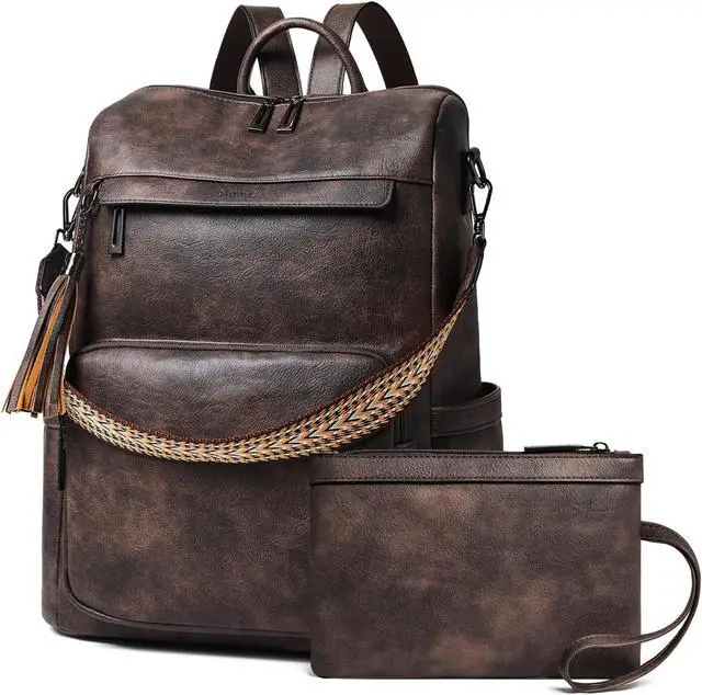 [(Practical Backpack Luggage Strap Design)] Leather backpack for women is dsigned for traveling, it helps you free your hands and back from the burden. Make your travel more convenient and enjoyable.Waterproof travel backpack fits under the seat also