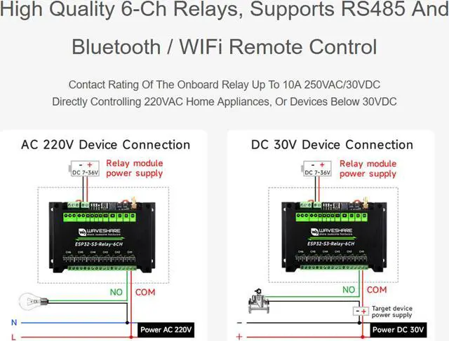 Waveshare 6-Ch ESP32-S3 W-i-F-i Relay Module Features