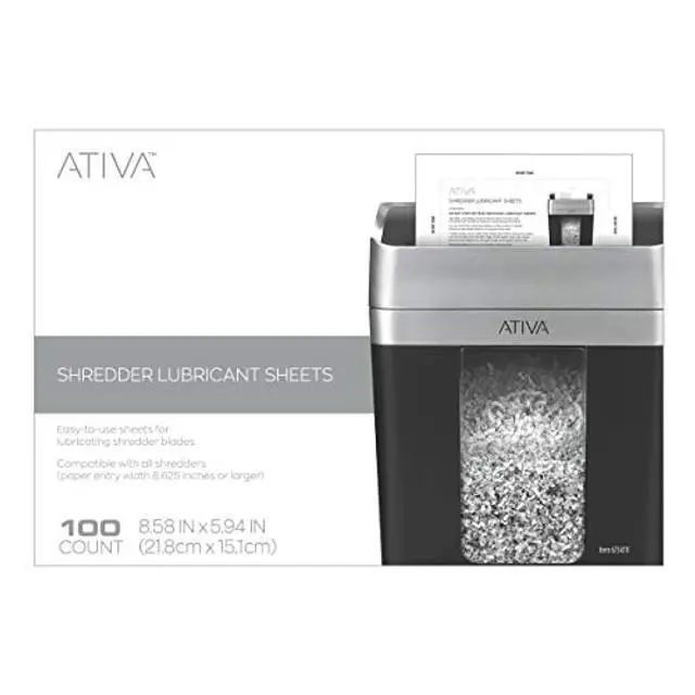 These easy-to-use shredder lubricant sheets help extend the life of your shredder. The sheets work to reduce paper dust and buildup, so your blades continue to work in top form. Lubricates shredder blades to prevent paper jams. Also improves shredder performance and efficiency by reducing paper dust and buildup from blades. Helps reduce shredder noise. Compatible with all shredders (paper-entry width 8-5/8" or larger). Lubricant sheets come in a pack of 100 sheets