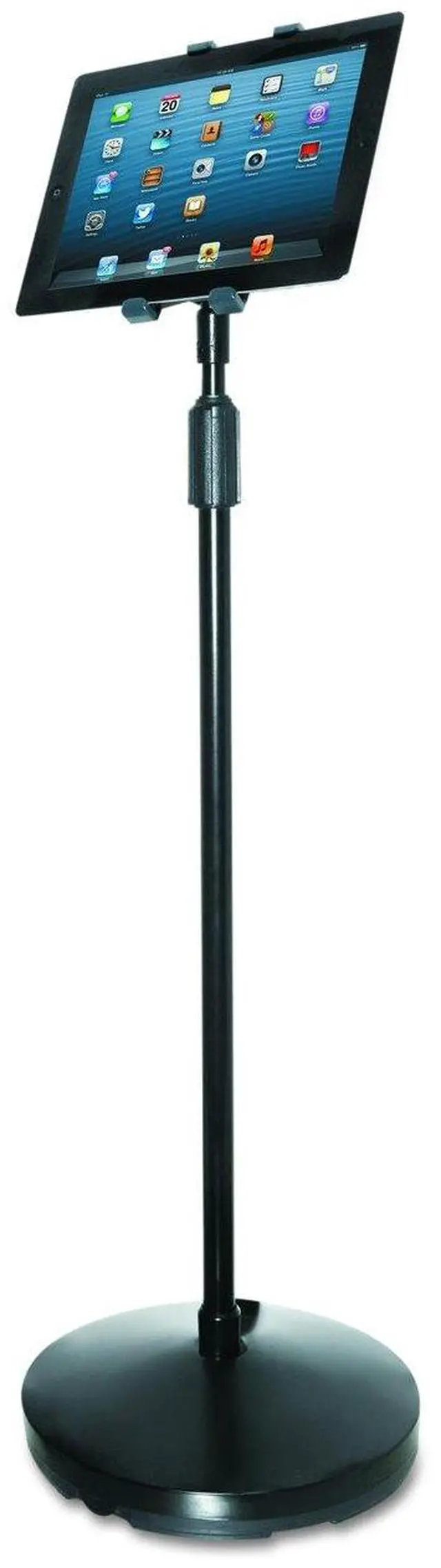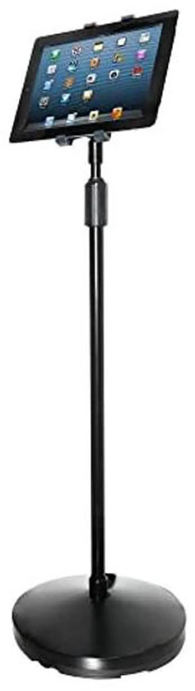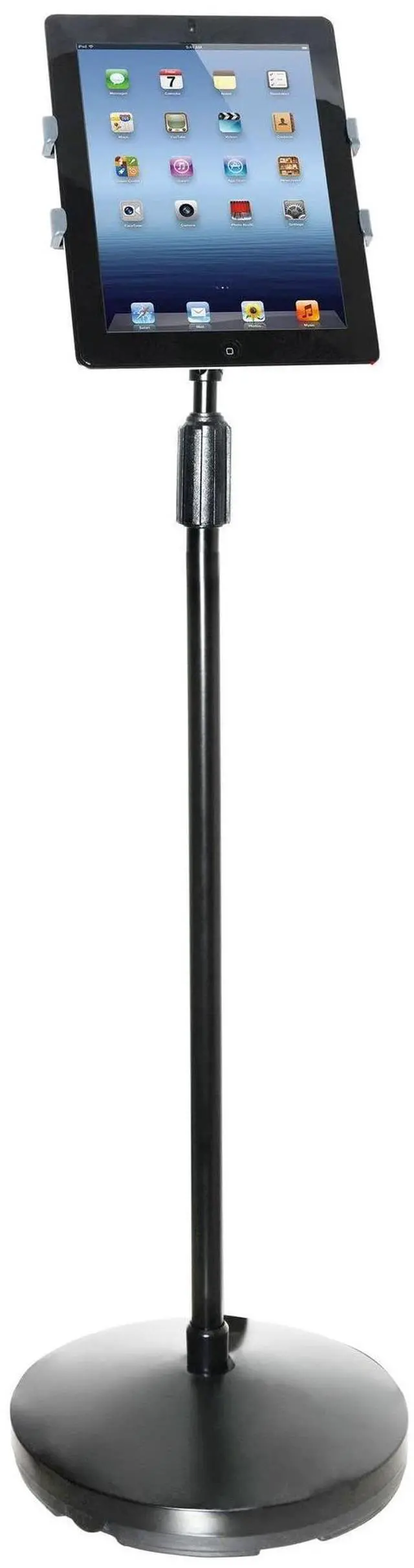 Great for use in conference and boardroom presentations, hotels and restaurants, this floor stand provides easy hands-free access to your tablet. Raise, rotate, angle, and swivel your tablet for optimum viewing in landscape or portrait position. Weighted base provides excellent support. Easy to attach and remove tablet.