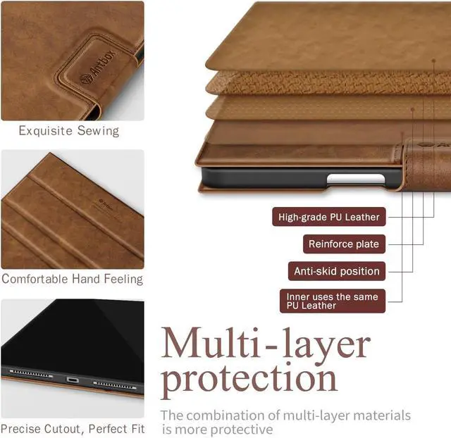 Antbox for iPad Pro 13 Inch Case M4(2024), Built-in Pencil Holder, Fully Supports Pencil Pro and Pencil (USB-C), Auto Sleep/Wake Function PU Leather iPad Pro 13 Case Cover (Brown)