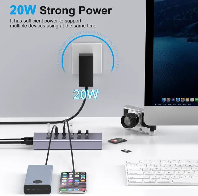 [8-in-1 USB Hub ] - The powered USB hub can extend USB 3.0 or USB C port to 6 USB 3.0 data ports and SD/TF card slot ,which can help you easily control your mouse, keyboard, hard drive, SD/TF card, computer etc. at the same time.