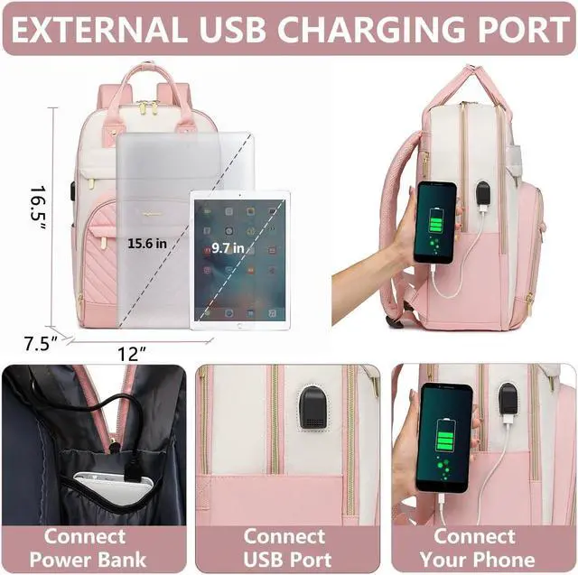 [(Work Backpack with USB Charging Port)] - 15.6-inch backpacks for women have an external USB charging port and Set-in charging cable that can be easily connected wherever you are. It is more convenient and comfortable for you. (POWER BANK IS NOT INCLUDED) Womens laptop backpack is the best choice for you.
