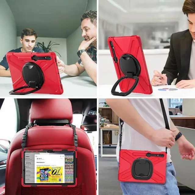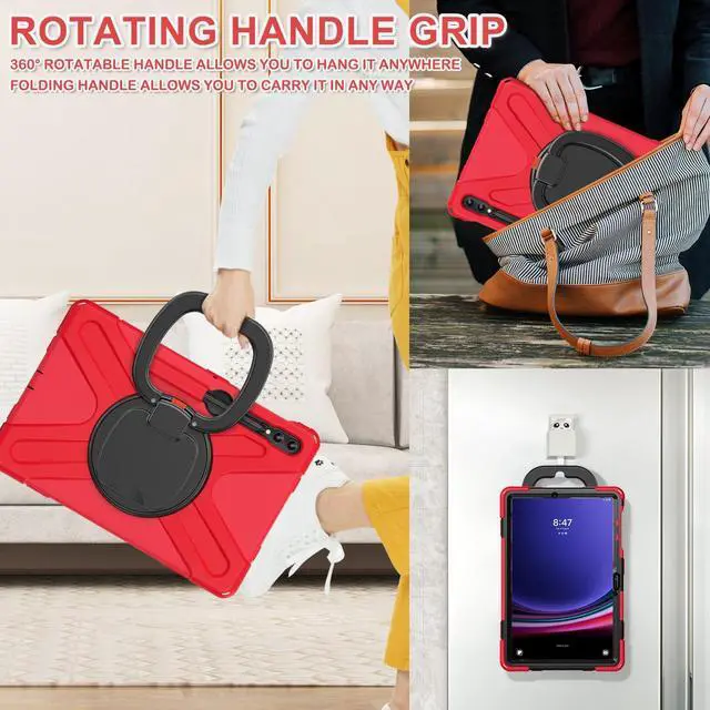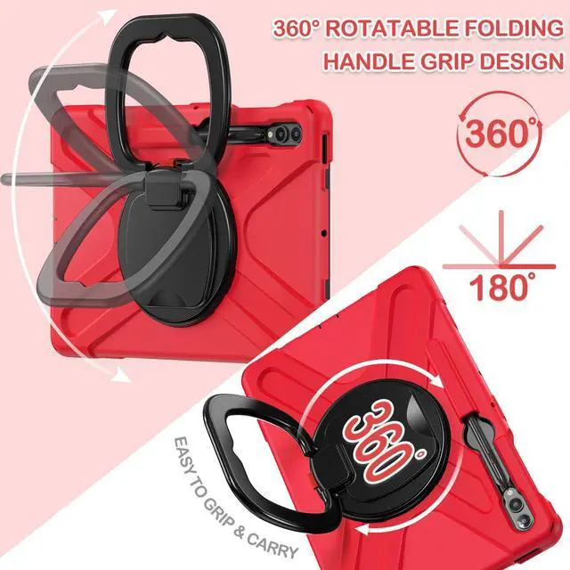 BATYUE Case for Samsung Galaxy Tab S10+ Plus /S9 FE+ Plus /S9+ Plus /S8+ Plus /S7+ Plus /S7 FE 5G 12.4 inch, Shockproof Protective Tablet Case with Shoulder Strap, Kickstand, Red