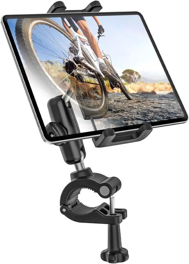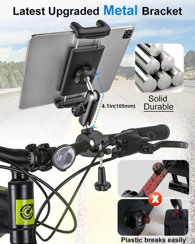 Kolasels Bike Tablet Holder Handlebar Clamp - [Anti-Shake Metal Arm] Motorcycle Tablet Mount Holder, Universal ipad Holder for Treadmill, Stroller, Wheelchair, Exercise Bike, for 4-13" Tablet Phone