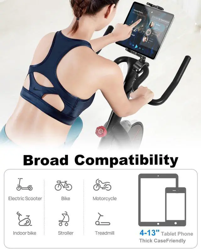 [(Ultra Secure & Stable)] Spin Bike Tablet Holder comes with aluminum arm and metal ball head that ensures unparalleled stability and durability. It completely solves the problems of aging, breakage and instability caused by inferior material brackets and plastic ball heads on the market.