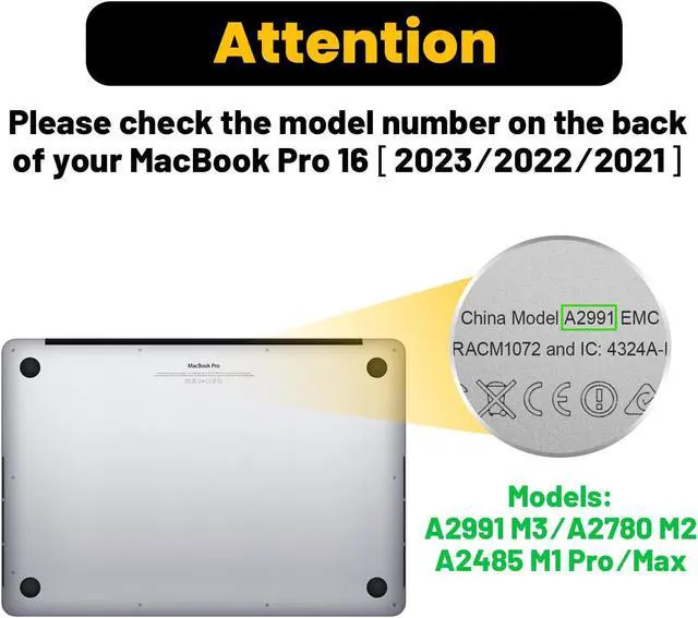 [Exclusive Compatibility for Precise Fit] - This case is designed solely for compatibility with the MacBook Pro 16, which was released in 2021- 2024. It is suitable for models equipped with M4 Pro / M4 Max / M3 Pro / M3 Max / M2 Pro / M2 Max / M1 Pro / M1 Max chips, featuring a Liquid Retina XDR Display and Touch ID. The relevant model numbers are A3403, A3186, A2991, A2780, and A2485. Before you make a purchase, please carefully check the model number "Axxxx" on the back of your laptop. Ensure that you select the exact same model number as those compatible with this 16 - inch MacBook Pro cover, namely "A3403", "A3186", "A2991", "A2780", or "A2485".