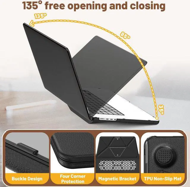 [Ergonomic Magnetic Kickstand for Enhanced Usability] - Integrated Foldable Magnetic stand in our MacBook Pro 16 inch M4 case delivers optimal viewing and typing angles, transforming work, study, and leisure time into more comfortable experiences. Say goodbye to strain and embrace convenience with every use
