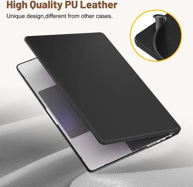 KAIJIAbox Case for MacBook Pro 16 inch M4 2024, PU Leather Foldable Stand Plastic Hard Shell Protective Cover for MacBook Pro 16 Inch 2021-2024 [M4 A3403 A3186/M1 A2485/M2 A2780/M3 A2991] (Black)