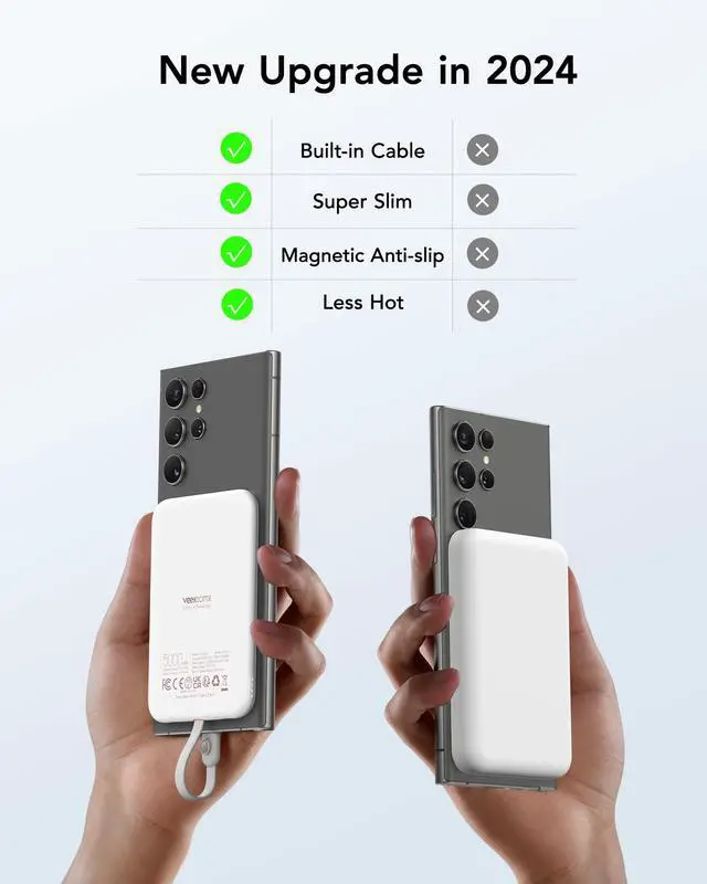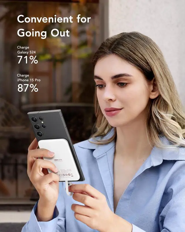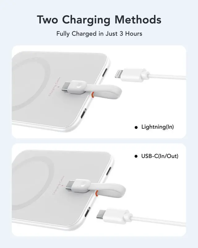 VEEKTOMX Power Bank 5000mAh with Cable Fast Charging, Magnetic Portable Battery Pack for iPhone, White