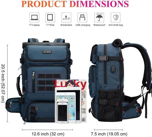 Dimension and Large Capacity:Approx 12.6"L x 20.5"H x 7.5" W;Weight:1.65kg (3.91 lbs).A 29 to 52 inch removable and adjustable shoulder strap; Can hold your 17 inch laptop,2 sets of clothes, shoes,water bottle, umbrella.