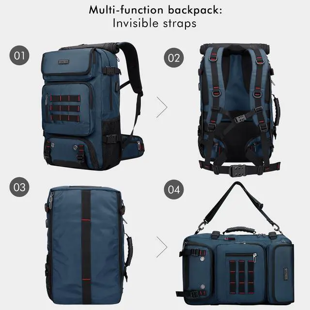 Multi Functional Backpack:This carry on backpack comes with a 35 to 50 inch removable and adjustable shoulder strap which can be hidden in a large zipper pocket on the back,enabling multiple carrying options