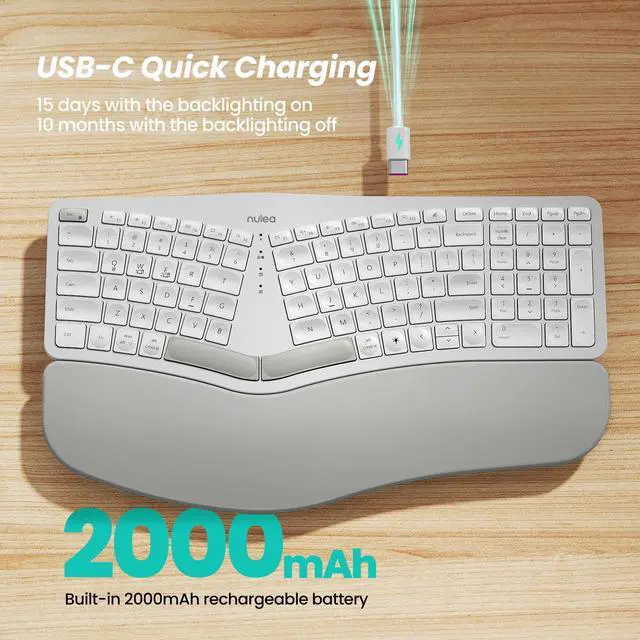 Exceptional Comfort: Standard keyboards force you to hold your wrists and arms at angles that can cause discomfort or pain in your hand, arm, or shoulder. With Nulea ergonomic wireless keyboard, it can help you position your body more properly, with your shoulders relaxed and can reduce the risk of fatigue and injury by its split, splayed and curved design.