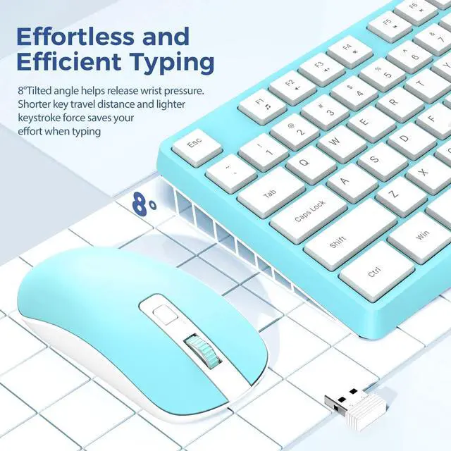 2.4G Wireless Plug and Play-- Simply connect wireless keyboard and mouse with a USB receiver (INCLUDED in mouses battery compartment), for saving USB port of your computer. No delays or dropouts. Allows reliable wireless connection up to 10 meters(33 ft) without any driver.