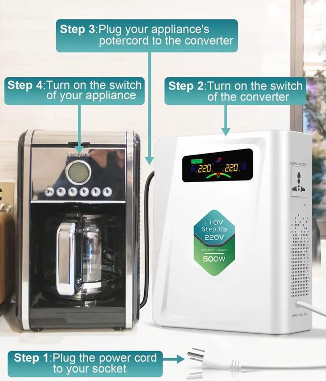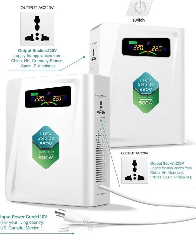 Voltage Converter 110 to 220 Step Up Transformer 500W, No Noise, Ten Protection Functions, CE & CQC Certified Using 220V Asia Euro Appliance in US