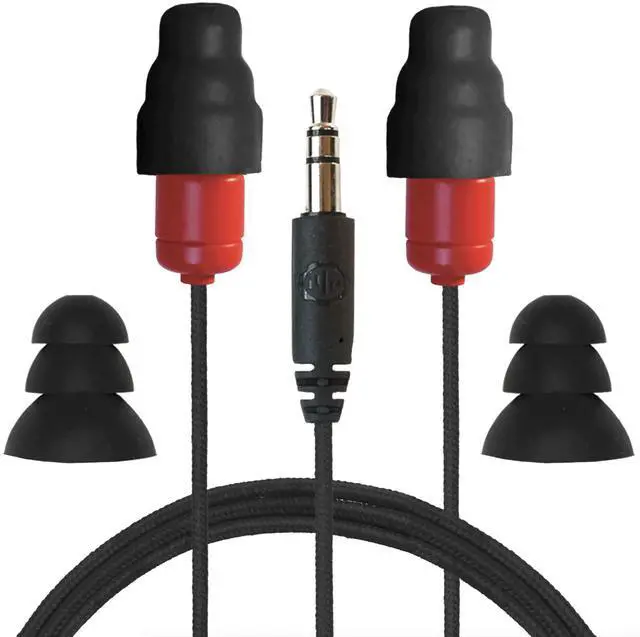 Plugfones Protector VL Audio Earbuds, OSHA Compliant Earplugs with Sound, Black & Red