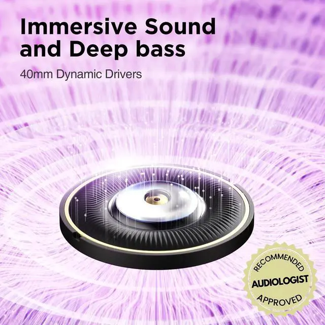 [Immersive Sound]: Featuring custom oversized 40mm drivers, JRUMZ Clarity Wireless Noise Cancelling headphones deliver crystal-clear sound and powerful bass, ensuring an immersive listening experience with extraordinary clarity and detail.